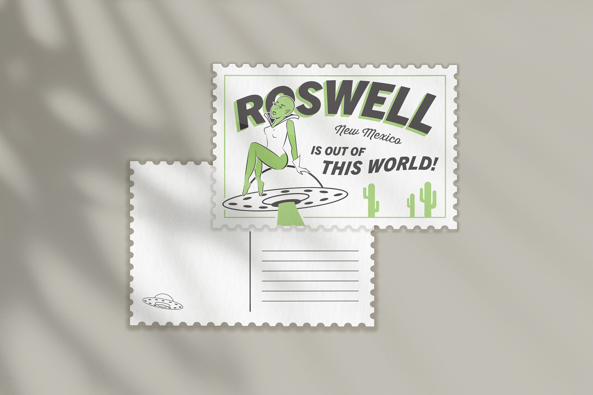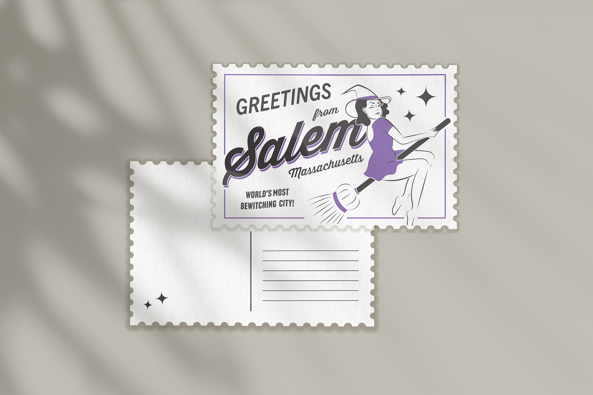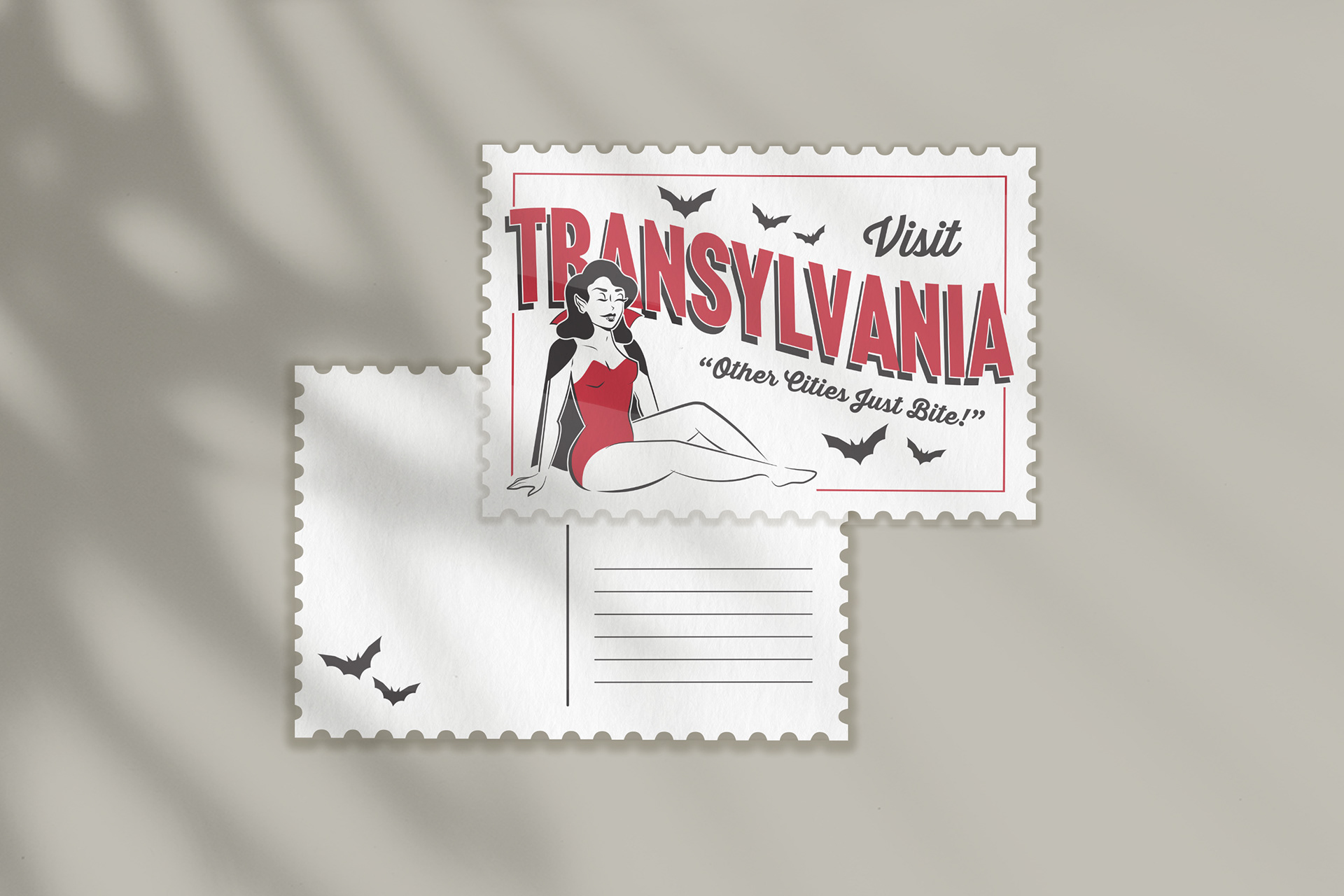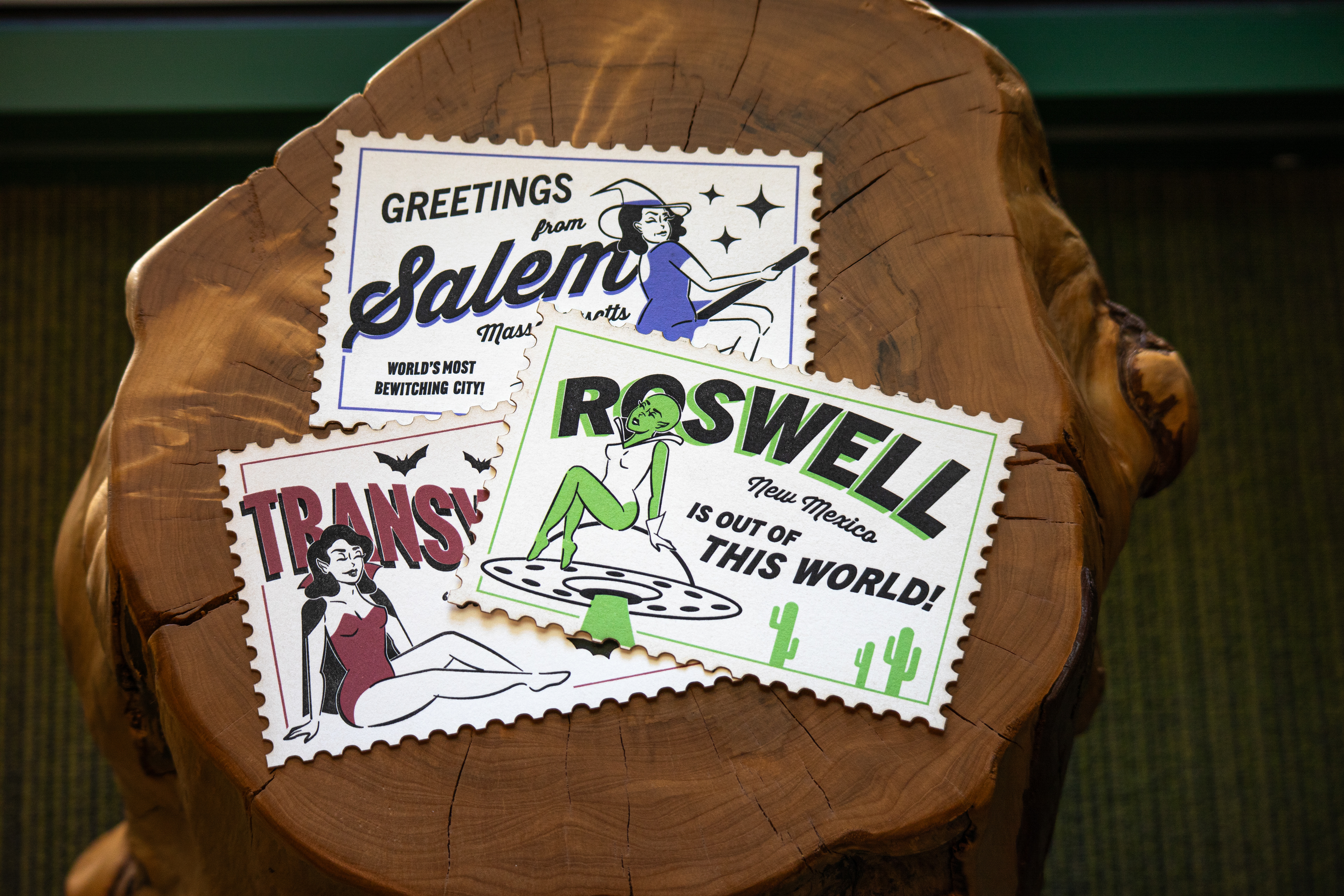 Letterpressed postcards inspired by classic monsters and their famous cities.